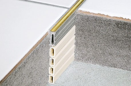 Profilé en PVC, Schlüter-DILEX-EZ G 70 "SCHLÜTER-SYSTEMS", de 70 mm de hauteur et 8 mm de largeur, avec joint d'absorption de mouvements, couleur grise RAL 7030, fourni en barres de 2,5 m de longueur, pour joints de partage. |